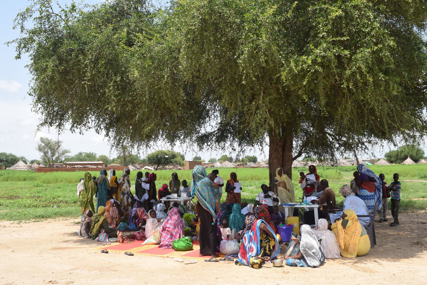 The village of Gambir, where MSF runs a mobile malnutrition clinic. Here MSF teams weigh babies and children, measure their upper arm circumference, check they have an appetite and also give a measles vaccination or medication for malaria if necessary. Mums receive plumpynut, soap and a mosquito net for their child and are asked to return the following week, until their children are no longer malnourished.